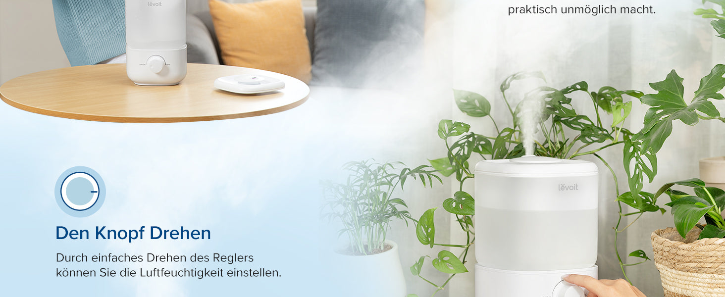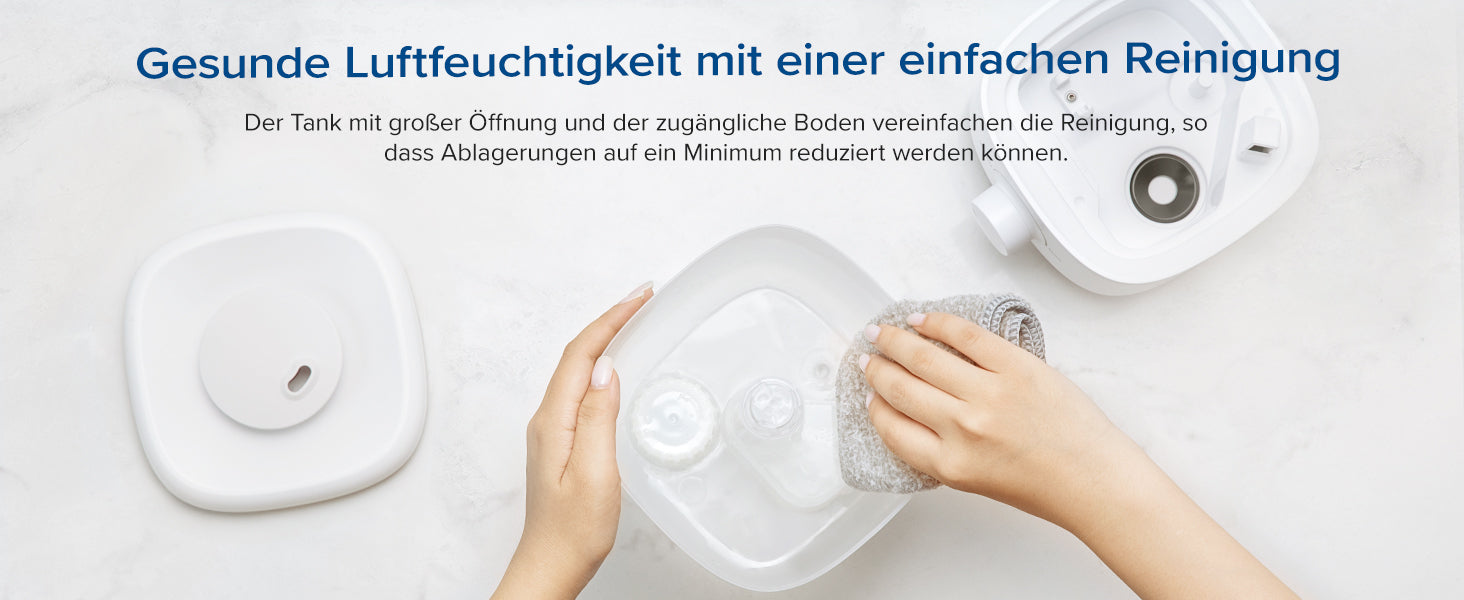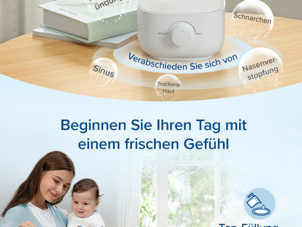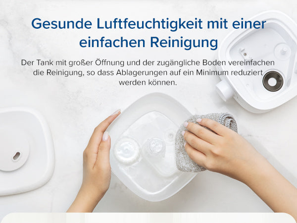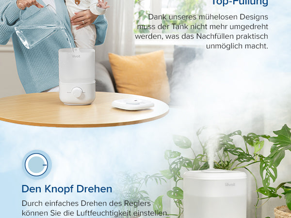 - Einfache Top-Füllung: Der abnehmbare Wassertank mit großer oberer Öffnung sorgt für die einfache Nachfüllung und Reinigung. Sehr praktischer kleiner Raumluftbefeuchter