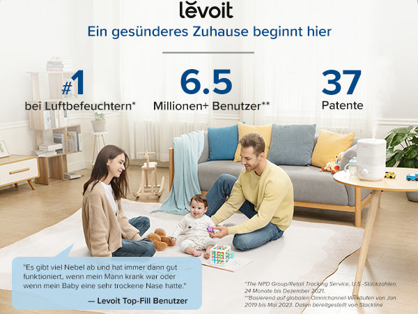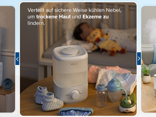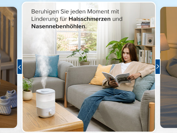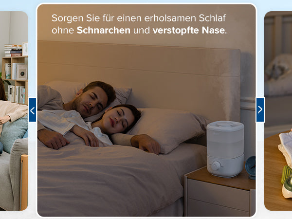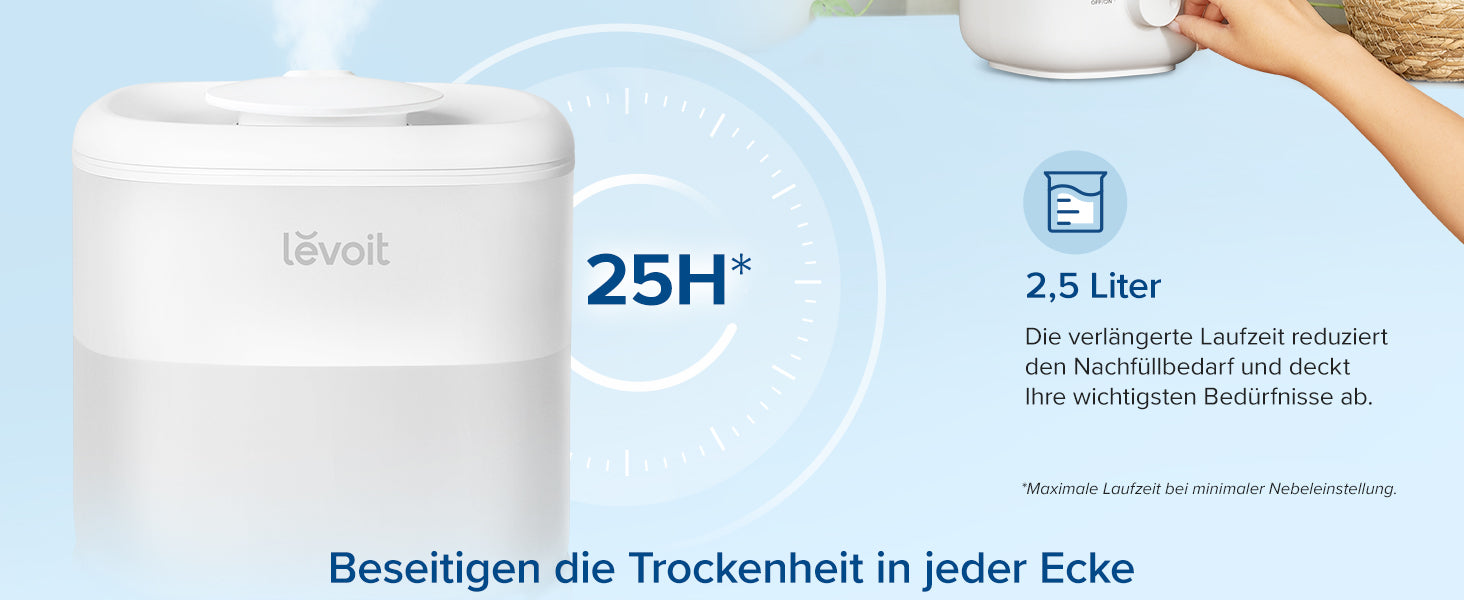 - Komfortabler Schlaf: Der Raumbefeuchter mit 2,5L deckt eine Fläche von 20m² ab und ist für Schlafzimmer geeignet. Mit einem Geräuschpegel von 26dB und einer Betriebsdauer von bis zu 25 Stunden (im Modus der niedrigsten Geschwindigkeit) können Sie und Ihr Baby mit nur einer Nachfüllung die ganze Nacht ruhig schlafen