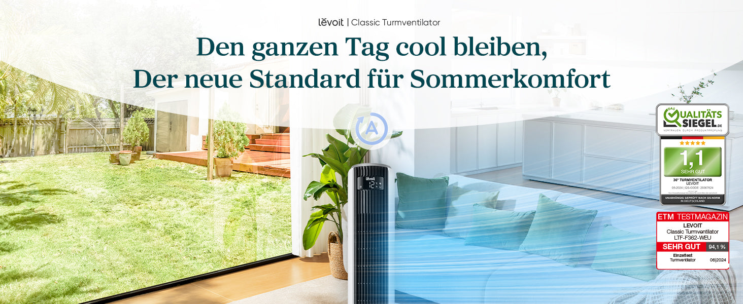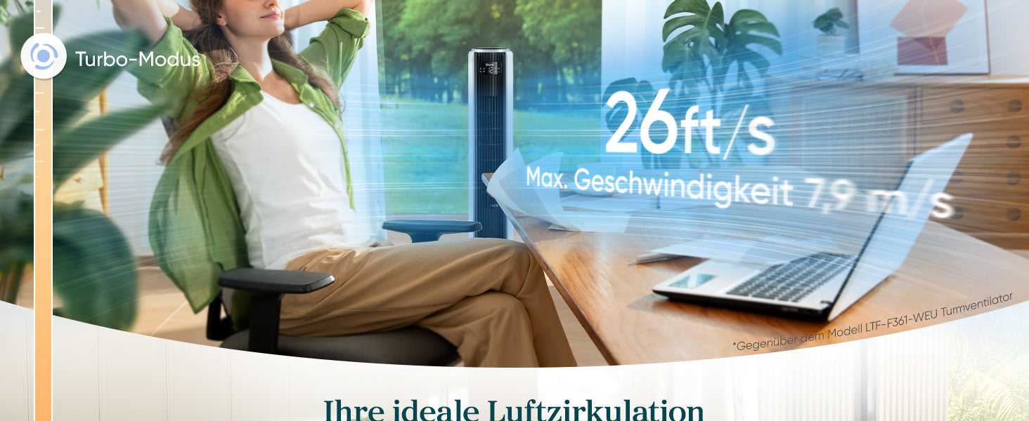 Leistungsstark: Mit einer Luftgeschwindigkeit von bis zu 7,9 m/s und einer 90-Grad-Oszillation sorgt dieser Ventilator dafür, dass Ihr Innenraum schnell abgekühlt wird