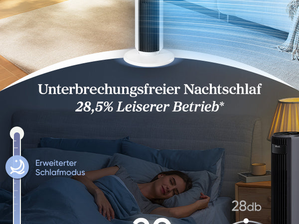 Fortgeschrittener Schlafmodus: ausgestattet mit einem Temperatursensor, der den Luftstrom in Echtzeit an die Temperatur anpasst, Licht automatisch aus, 1-12 Stunden Timer zur Verbesserung des Schlafkomforts; Super für Schlafzimmer