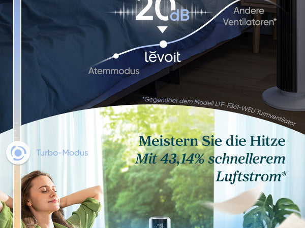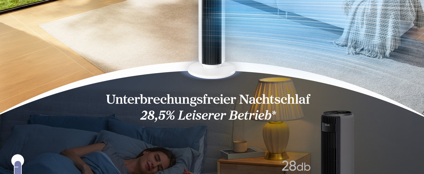 Super leise mit 20 dB: Mit einem Mindestgeräuschpegel von 20 Dezibel stört dieser ultraleise Turmventilator weder bei der Arbeit noch in der Freizeit; Ideal für Büro, Wohnzimmer usw
