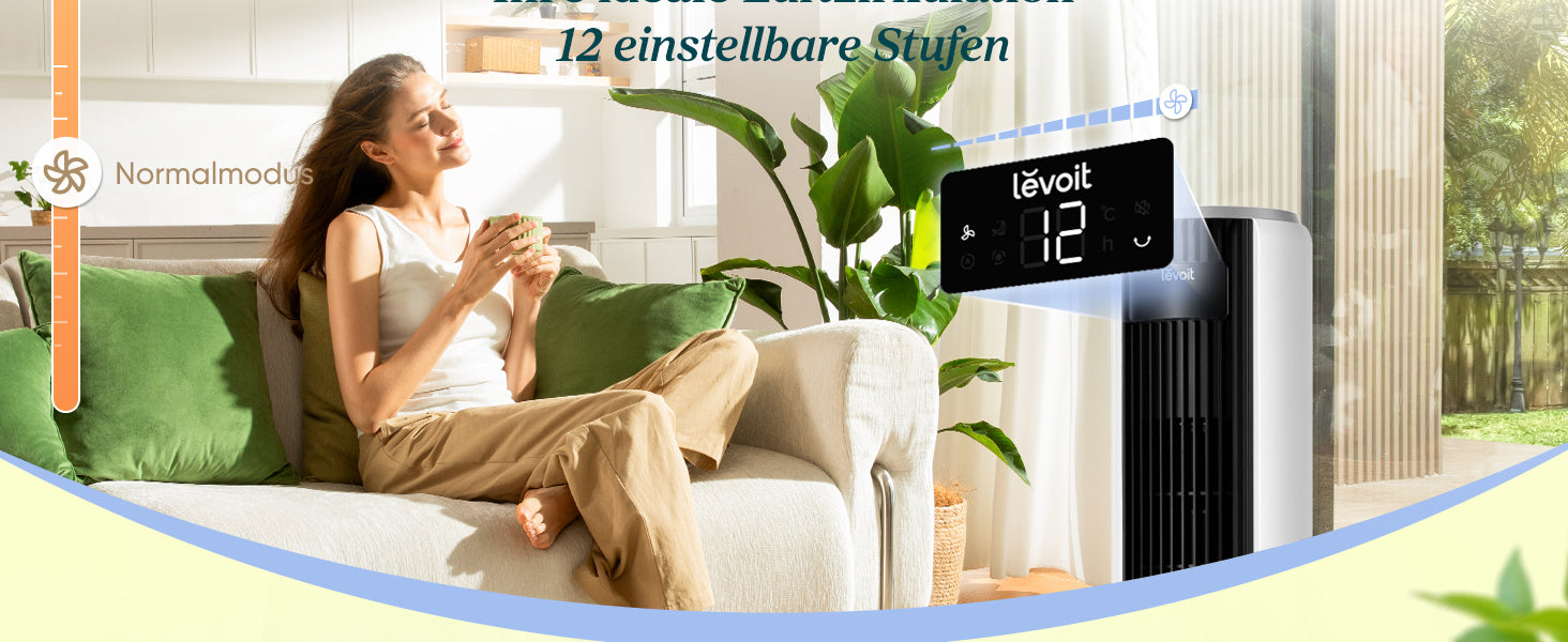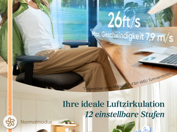 Für verschiedene Szenarien geeignet: Mit 4 Modi (Normal/Turbo/Schlaf/Auto) und 12 Geschwindigkeiten, von sanft bis kräftig, können Sie Ihren Komfort ganz einfach durch Drücken einer Taste auf dem Bedienfeld oder der Fernbedienung anpassen