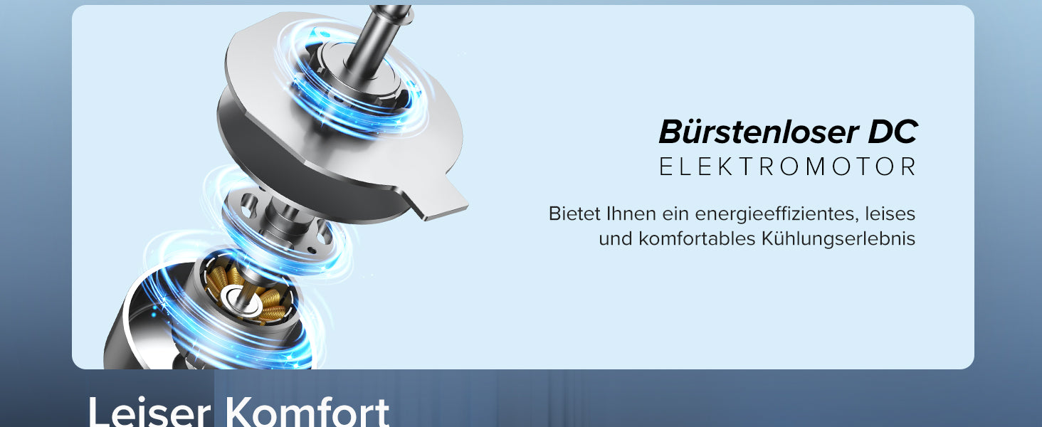 Niedriger Verbrauch: Der Hightech-DC-Motor mit VORTEXAIR TECHNOLOGY ermöglicht einen neuen Durchbruch; Mit maximaler 27 W Leistung können Sie die Sommerhitze auf eine energieeffizientere Weise genießen.