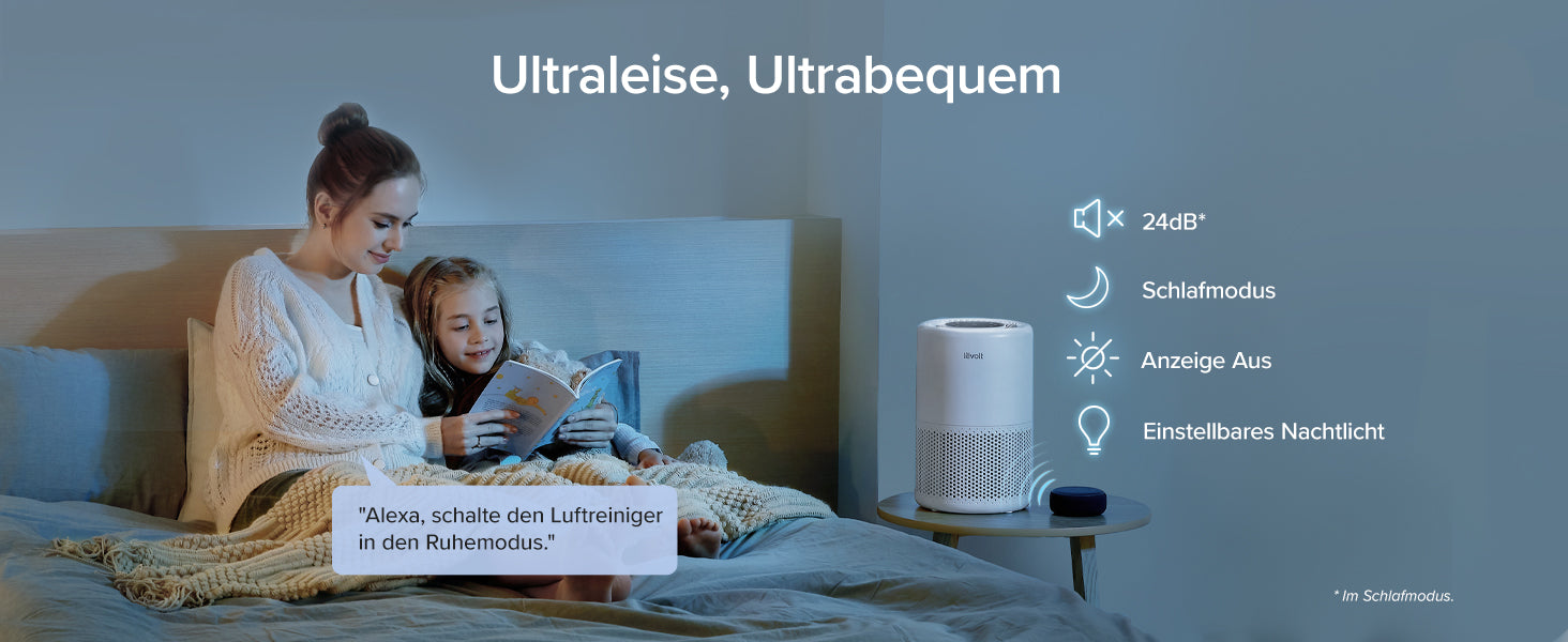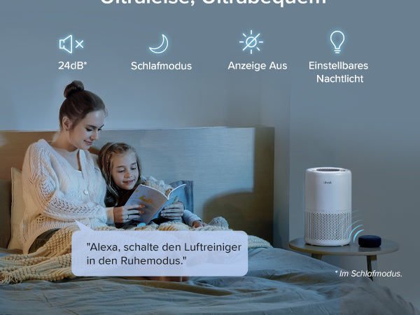 - Besonders leiser Betrieb: Mit QuietKEAP-Technologie arbeitet der Luftreiniger im Schlafmodus nahezu geräuschlos (24dB). Lautstärke bei höchster Stufe ist 45dB