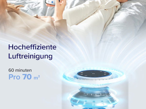 - Kinderleichte Touchdisplay: Durch das Touchdisplay können Sie 4 Geschwindigkeitsstufen auswählen (Schlafmodus und 1-3 Lüfterstufen), Timer für 2-4-8 Stunden einstellen, Nachtlicht und Display ein-/ausschalten