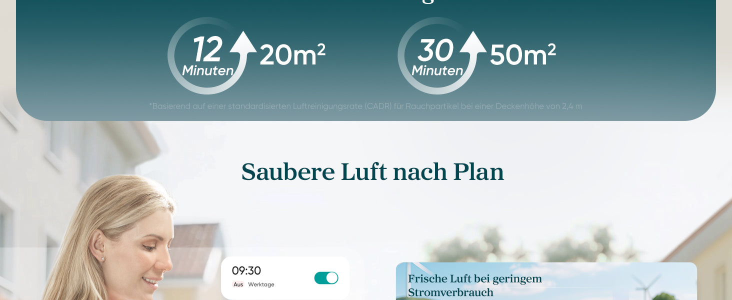 - Erstklassige Luftreinigung, die man spüren kann: Unsere HEPA-Filter bieten eine Filterleistung von bis zu 99,97 % für Partikel mit einer Größe von 0,1–0,3 µm, einschließlich Pollen, Staub, Tierhaare und Allergene. Getestet von einem unabhängigen Labor