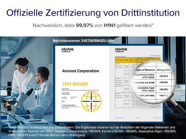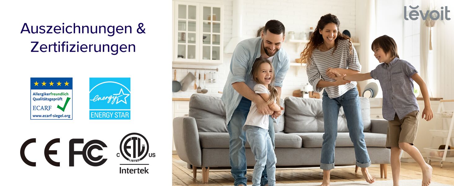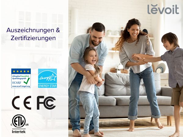 - 【Zertifizierte Luftreiniger】Core 600S wurde von ECARF (Europäische Stiftung für Allergieforschung) als allergikerfreundlich zertifiziert und von INTERTEK getestet, dass die Filtrationseffizienz von H1N1 bis zu 99,97% beträgt. 100% ozonfrei