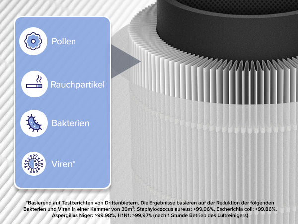 Entfernt 99,97 % der ultrafeinen Partikel mit einer Größe von 0,3µm