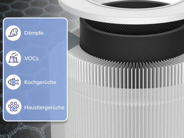 - 【HEPA Luftfilter】Die 3-schichtige Filterung mit HEPA-, Aktivkohlefilter und Vorfilter entfernt 99,97 % der ultrafeinen Partikel mit einer Größe von 0,3µm, damit Sie vor Schimmel, Staub, Pollen, Tierhaaren, Gerüche, Zigarettenrauch, und anderen Schadstoffen geschützt sind