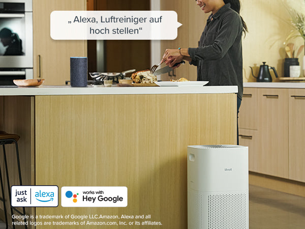 - 【Sprachsteuerung】Steuern Sie den Luftreiniger per Sprachbefehl. Durch Alexa und Google Assistant können Sie die Lüfterstufen ändern und den Luftreiniger ein/ausschalten