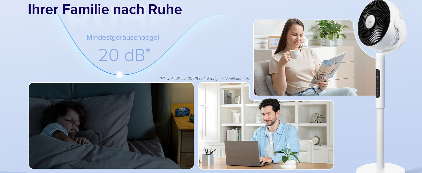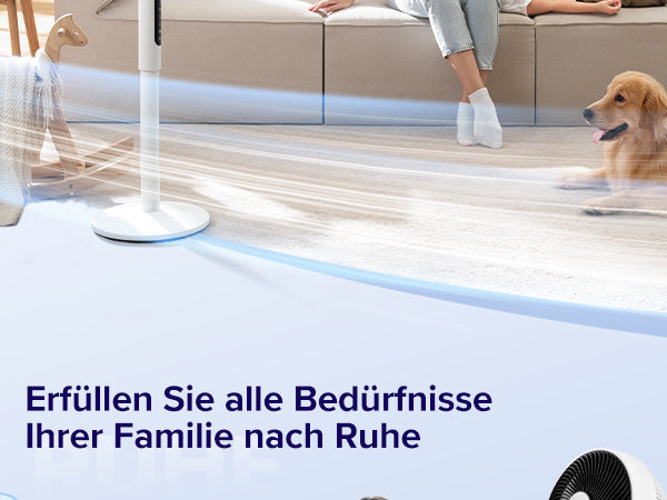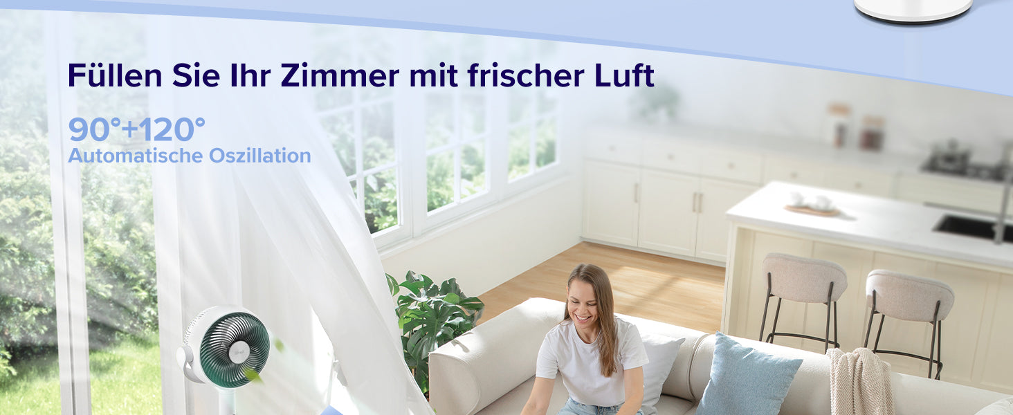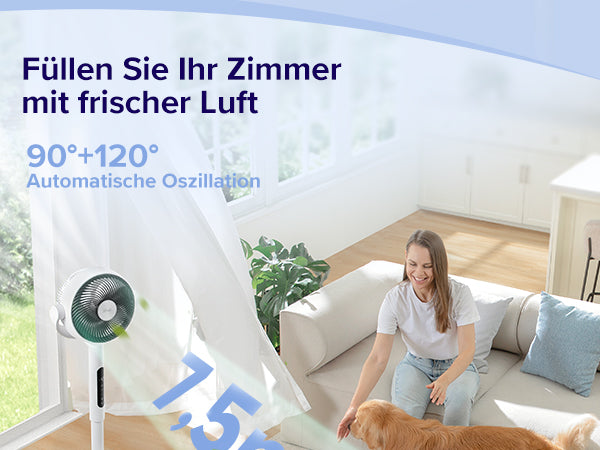 Schnelle Luftzirkulation im ganzen Haus: Das um 120° + 90° drehbare Design ermöglicht es jedem Familienmitglied, wie Kindern und Haustieren, das kühle Sommer zu genießen; Perfekt für Wohnungen, Schlafzimmer, Büros oder Wohnzimmer