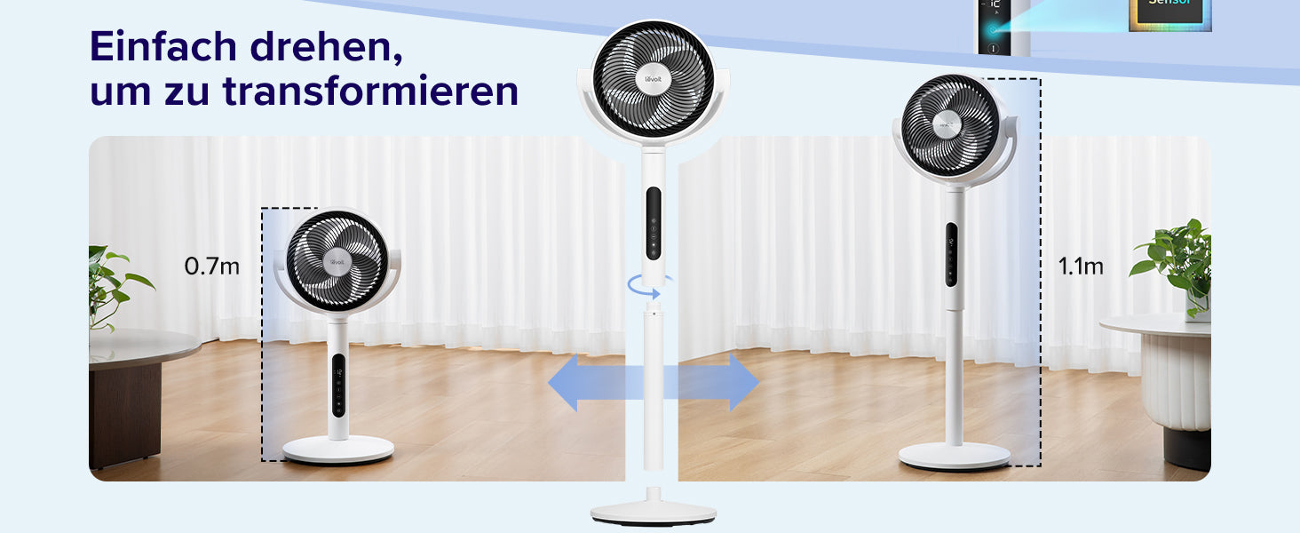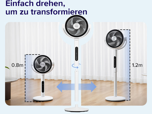 2 in 1 Ventilator: Dank der einstellbaren Höhe kann dieser Ventilator sowohl als Standventilator als auch als Tischventilator verwendet werden; Geeignet für eine Vielzahl von Szenarien