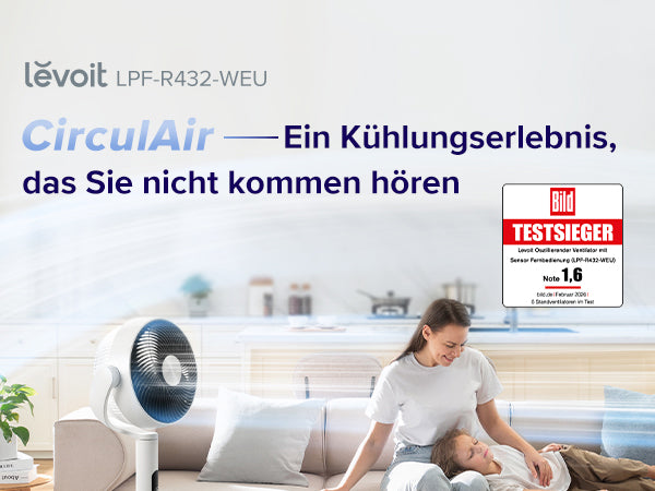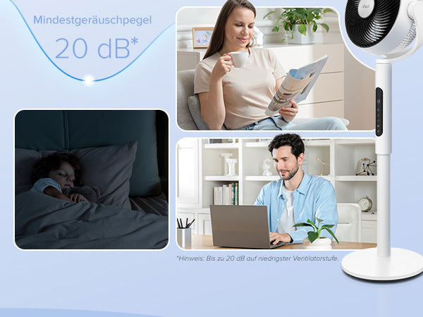 20 db super leiser ventilator: Beim Fernsehen, Arbeiten und Schlafen werden Sie nicht gestört; LEVOIT Standventilator mit Schlafmodus ist nicht nur sehr leise, sondern schaltet auch den Bildschirm aus, sodass Sie und Ihre Familie ungestört gut schlafen können