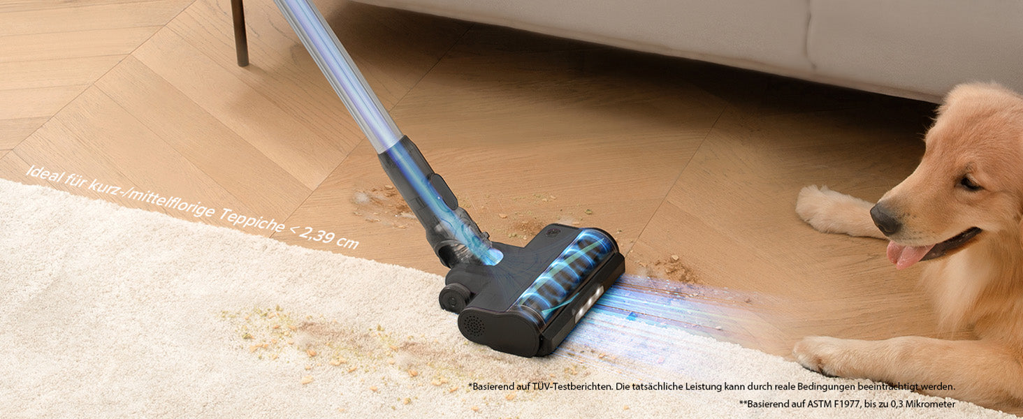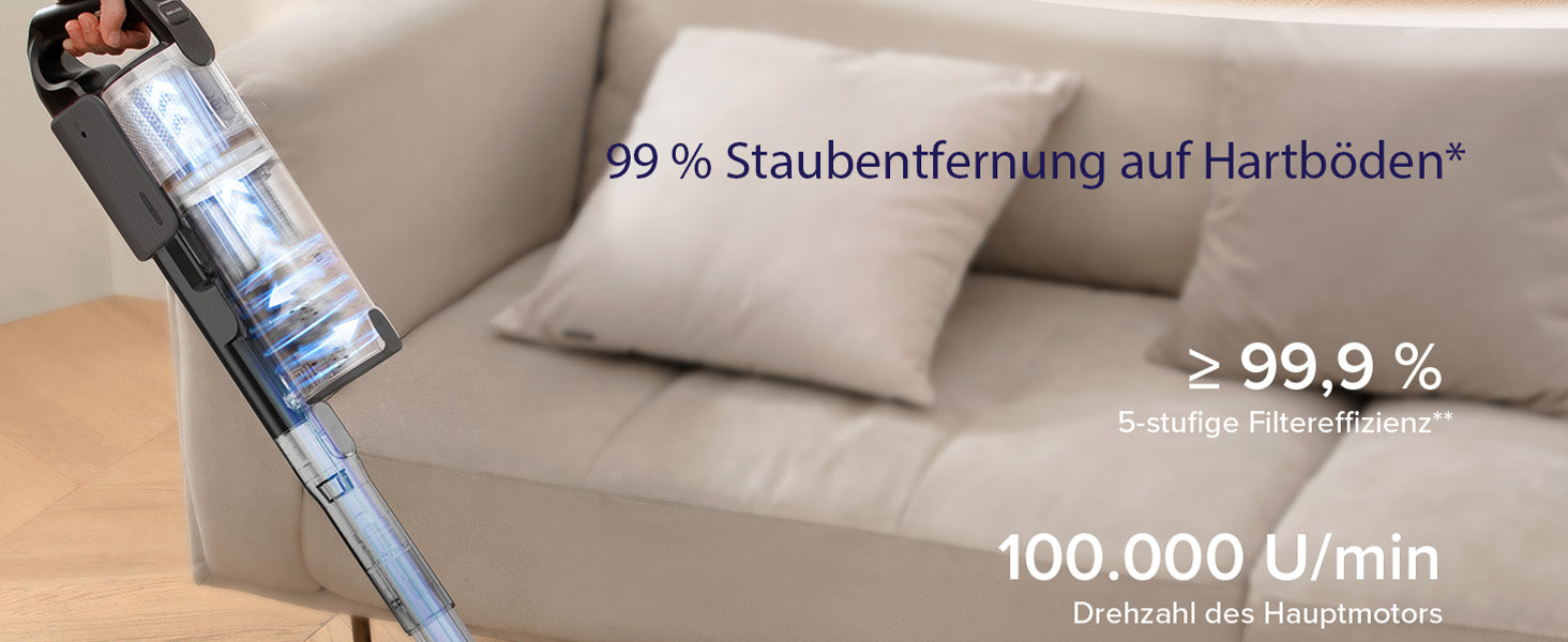 - Optimal für Tierbesitzer und Allergiker. Die 2-in-1-Tierhaardüse entfernt Tierhaare und Schuppen auf Möbeln, 5-stufiges Filtersystem mit Filterleistung bis zu 99,9 %.