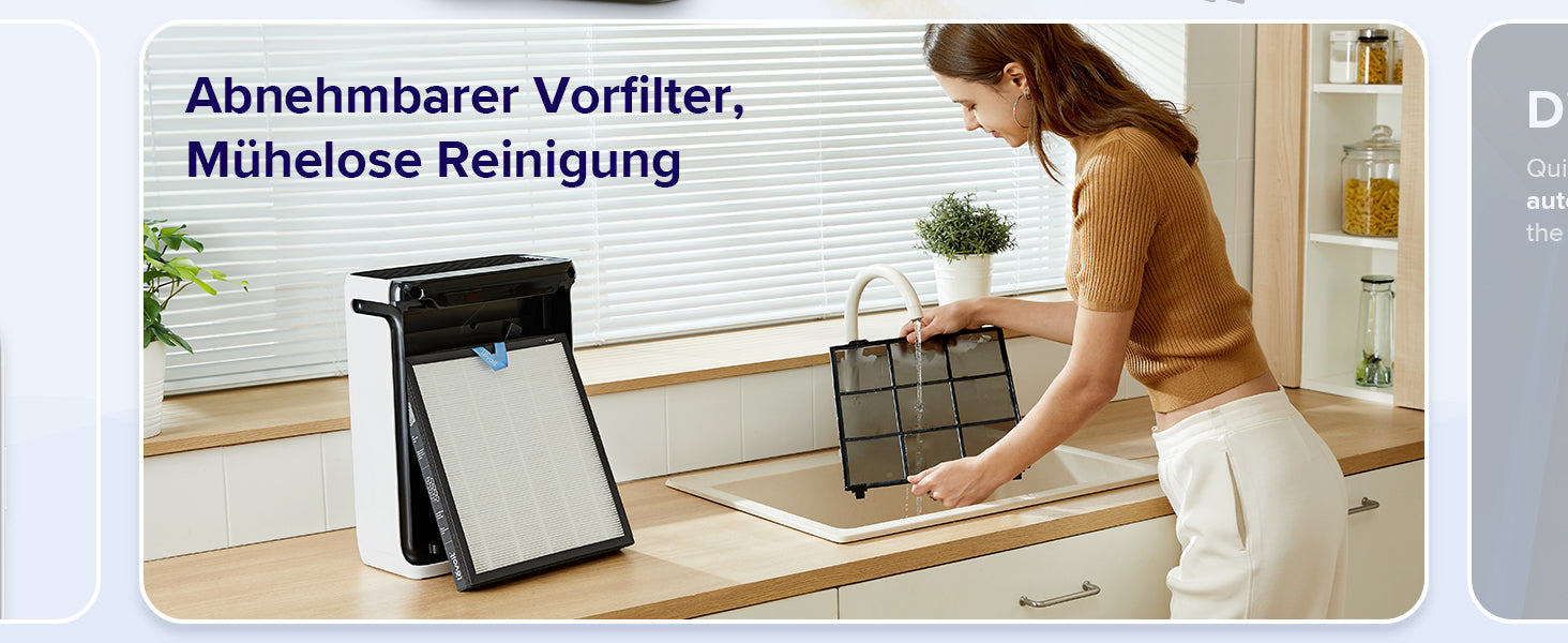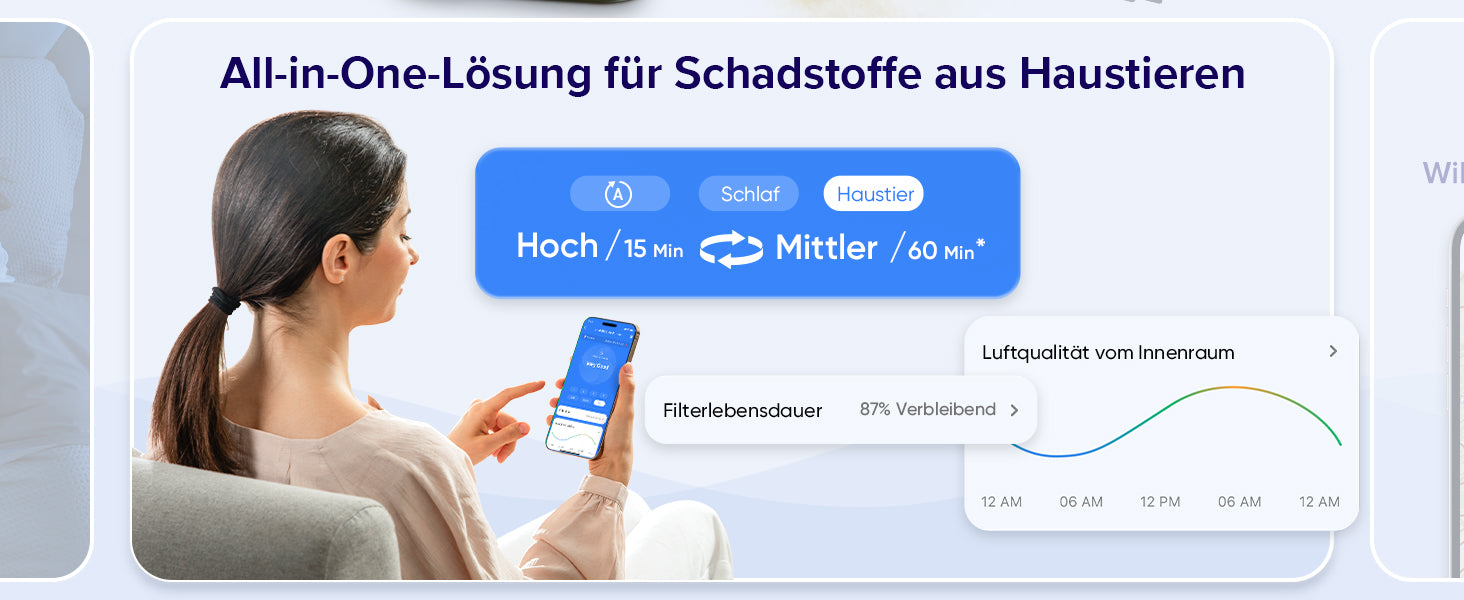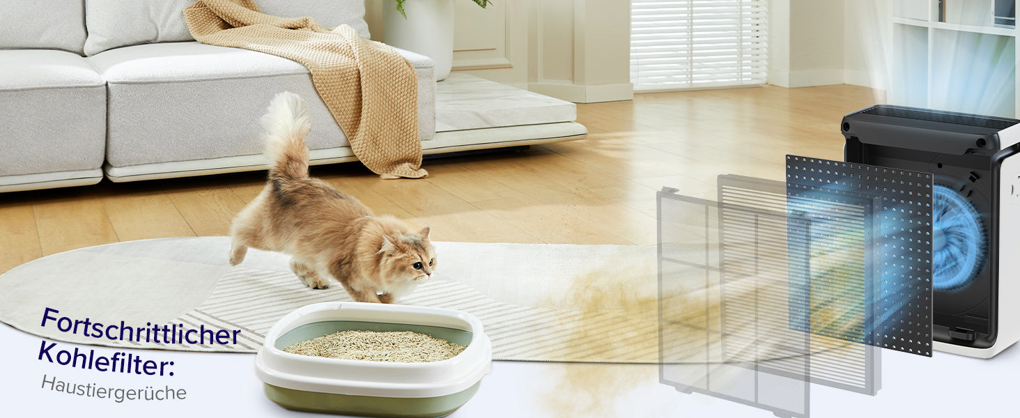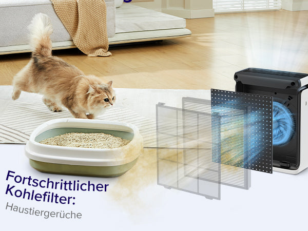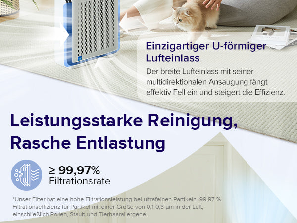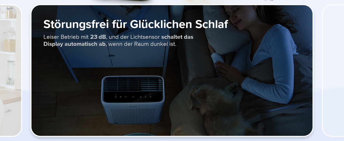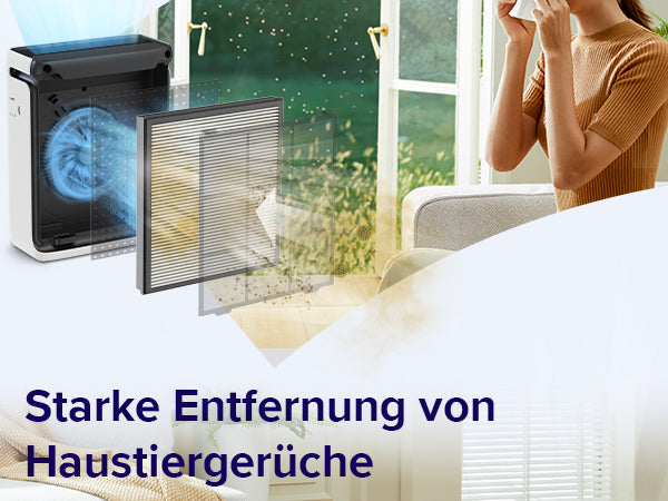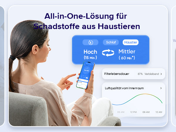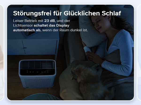 Schlechte Luftqualität betrifft die meisten Deutschen! zB. Allergene wie Pollen während der Pollensaison, Schimmel in jedem Winter, allgegenwärtige Hausstaubmilben, unangenehme Gerüche von dem Tier, Zigarettenrauch und der Küche. Vital 100s Pet-Luftreiniger bietet Ihnen die folgenden Lösungen: - 23dB leiser & Lichtsensor, besserer Schlaf: Mit 23dB benutzerdefiniertem Schlafmodus erfüllt Vital 100S Ihre Schlafbedürfnisse zu verschiedenen Zeiten in der Nacht. Der Lichtsensor erkennt Änderungen der Umgebungshelligkeit und schaltet das Display automatisch aus, um Ihnen ein lichtfreies Schlafzimmer zu schaffen