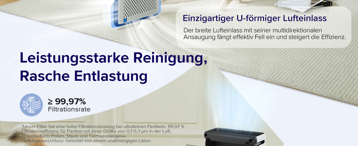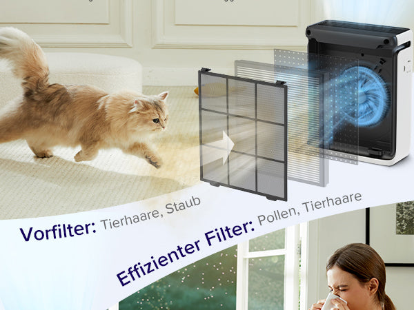 - Wirtschaftlicher & Effizienter: Der waschbare Vorfilter sorgt für eine längere Lebensdauer Ihrer HEPA- und Aktivkohlefilter. Der hocheffizierte HEPA Luftfilter entfernt mindestens 99,97% der Partikeln bis zu 0,3μm. HEPA-Filter reinigt Pollen und Hautschuppen, der Aktivkohlefilter neutralisiert Zigarettenrauch und Gerüche.