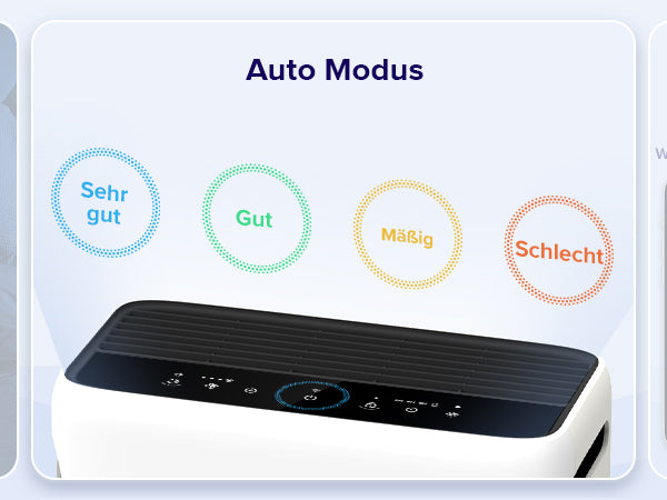 - Intelligente Überwachung, ganztägiger Schutz: Sie können die Luftqualitäts-Farbfeedback auf dem Display des Raumluftreinigers oder durch Vesync-App überwachen. Der Automatikmodus wird für Ihnen die optimale Stufe in Echtzeit wählen, oder Sie stellen die Geschwindigkeit selbst genau ein