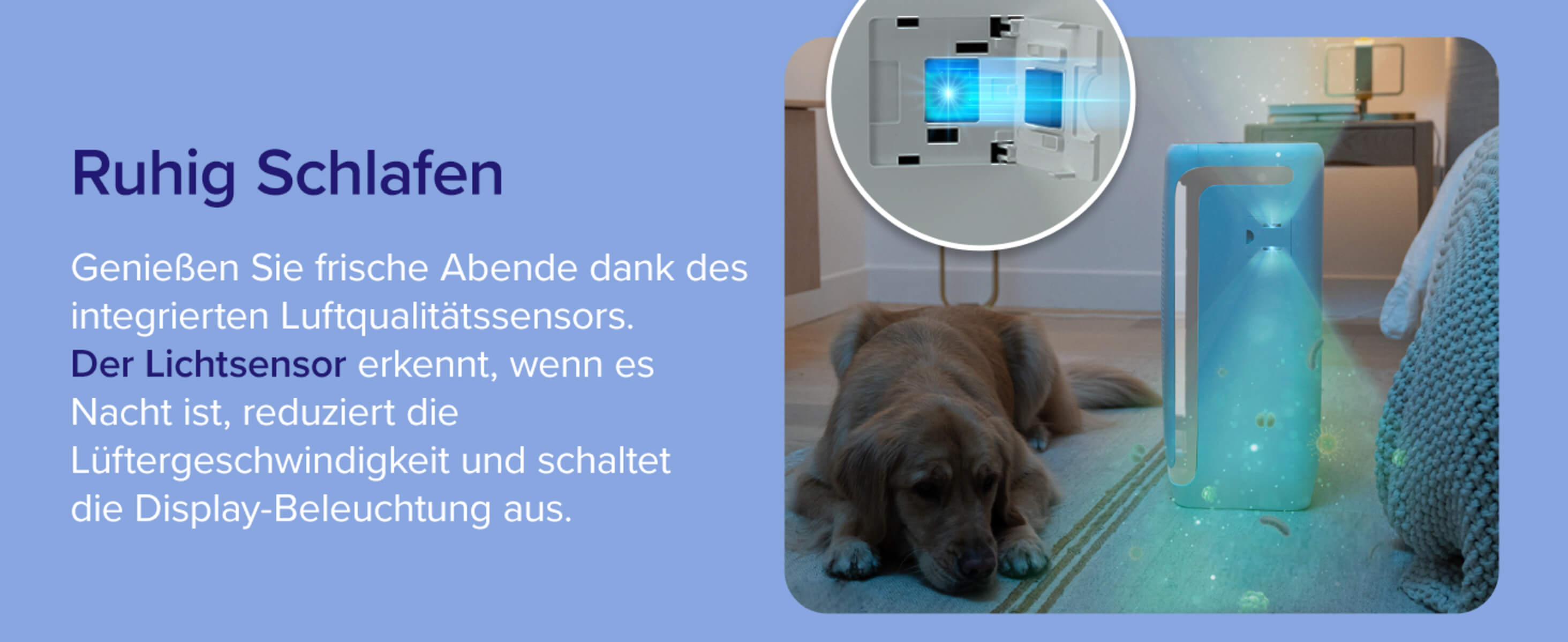 - Filtern Sie Tierhaare und Gerüche aus Ihrer Luft und sparen Sie Energie, wenn Sie den Haustiermodus aktivieren.